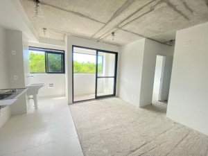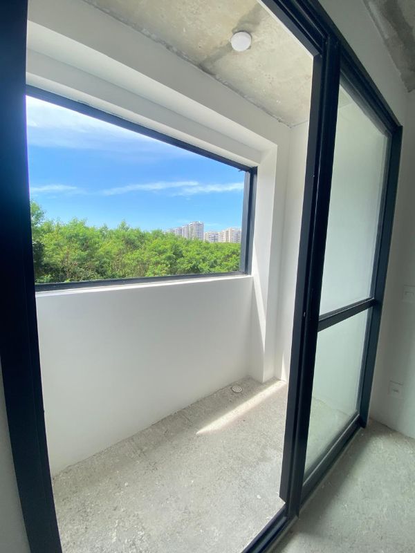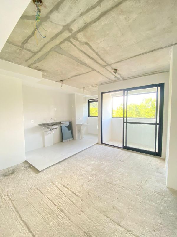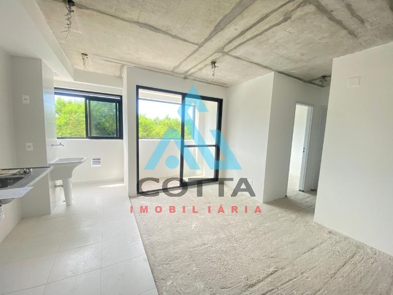 Apartamento de 2 quartos sendo uma suíte, varanda com fechamento em cortina de vidro, sala pode ser integrada com a varanda e cozinha, área de serviço, garagem.